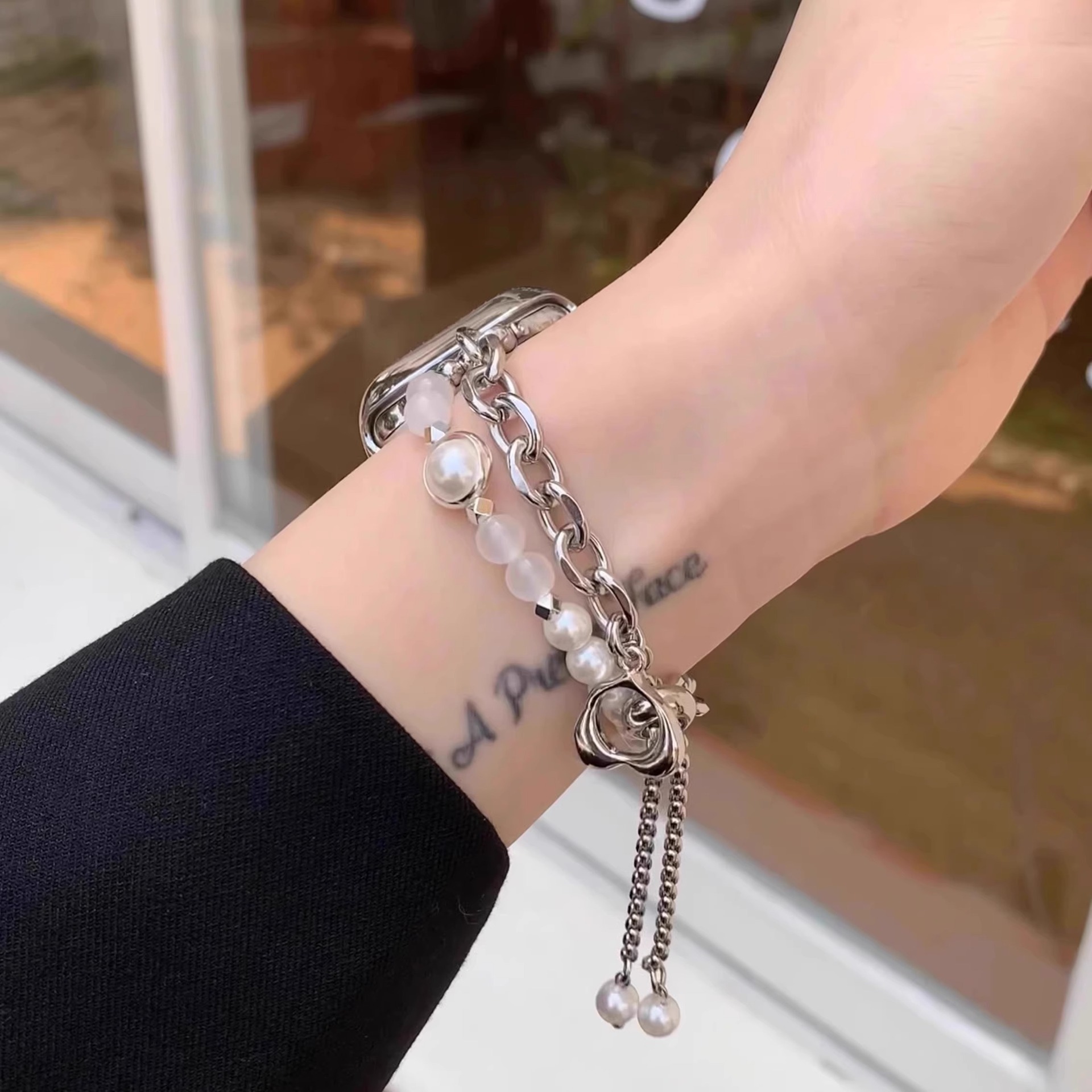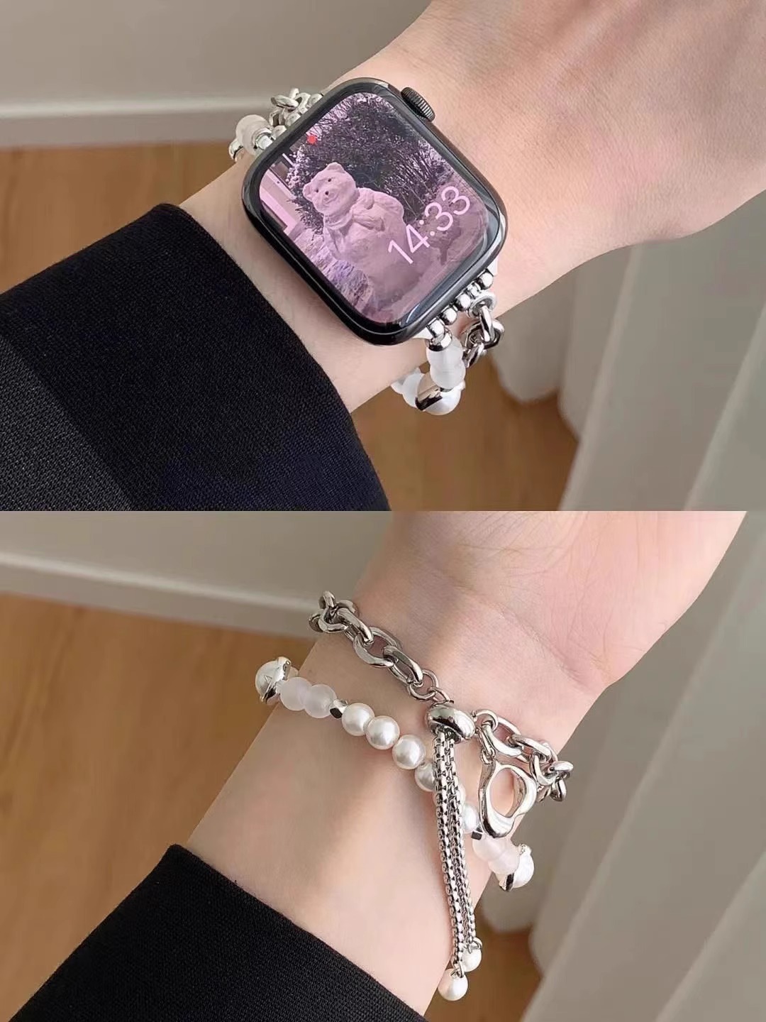 Color: White heart-shaped pearl chain, Black heart-shaped pearl chain, Pink heart-shaped pearl chain